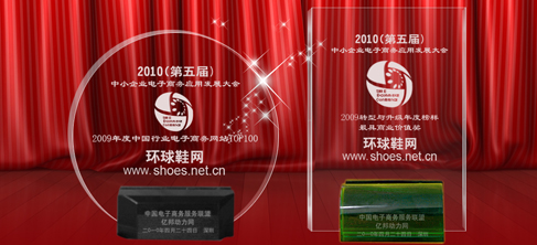 4月24日,中小企業電子商務應用發展大會暨2009年度中國行業電子商務網站TOP100頒獎盛典在深圳召開。本次會議以轉型與升級為主題,會議邀請了深圳市相關政府領導、全國各優秀電子商務企業代表、專家學者及眾多優秀中小企業高管上千人,共同分析和探討中國中小企業電子商務應用新發展趨勢。環球鞋網總經理林文佳先生應邀出席本次行業盛會,并在會上獲得2009年度中國行業電子商務網站TOP100及2009轉型與升級年度榜樣•最具商業價值獎兩項年度大獎,成為本次會議上最閃亮的明星企業之一。