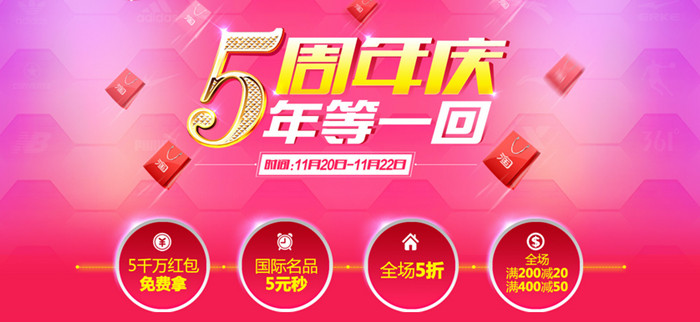 與此同時,為了感謝新老顧客五年來的支持,淘鞋網在本次周年慶期間推出了盛大的感恩回饋活動。(包括:5000萬紅包大放送,國際名品5元秒,超人氣爆款5折封頂、全場滿減等強力度活動。)