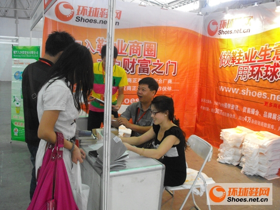 在展區(qū)環(huán)球鞋網(wǎng)工作人員熱情地和前來了解的人員介紹