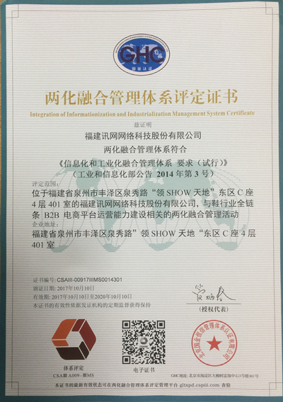 10月12日,訊網(wǎng)網(wǎng)絡(luò)收到了國家工信部頒發(fā)的“兩化融合管理體系”證書