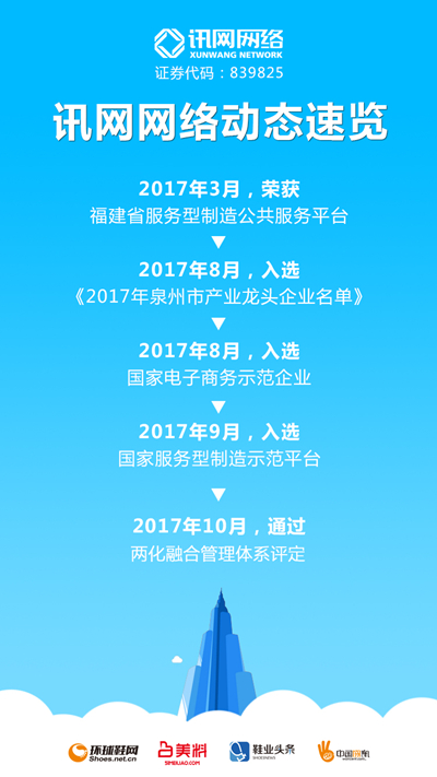 訊網(wǎng)網(wǎng)絡(luò)早在2002年成立之初,就著手信息化建設(shè),先后幫助企業(yè)搭建云建站,布局移動(dòng)端。2004年開始,為鞋行業(yè)搭建“全鏈條 B2B 電商平臺(tái)”,為企業(yè)提供線上推廣,線下營銷等服務(wù)形式,助力制造型企業(yè)轉(zhuǎn)型升級(jí),實(shí)現(xiàn)工業(yè)化與信息化的融合發(fā)展。