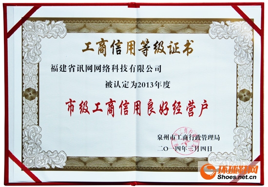 福建省訊網(wǎng)網(wǎng)絡(luò)科技有限公司被認定為2013年度市級工商信用良好經(jīng)營戶